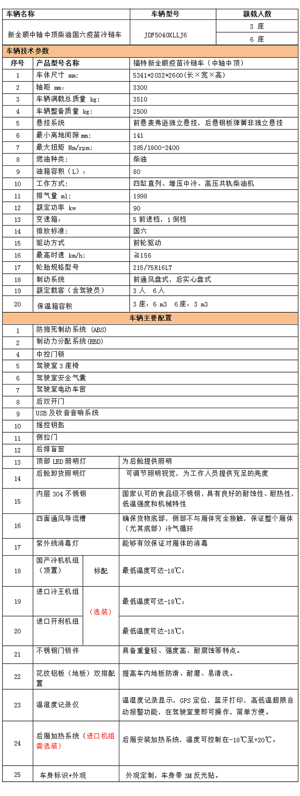 • 福特新全順中軸中頂疫苗冷鏈車(柴油) 參數(shù)展示