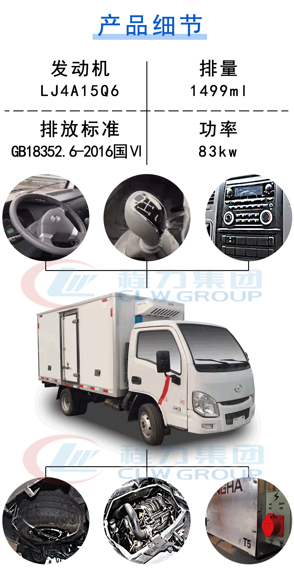 | 其他 | 1.ABS控制器型號/生產(chǎn)廠家:YF8/武漢元豐汽車電控系統(tǒng)有限公司;2.LJ4A15Q6凈功率為79kw,對應油耗值為9.6L/100km;3.車廂頂部封閉不可開啟;4.車廂可選裝不開門或側(cè)開門,可選裝左或右側(cè)開門,不同外觀側(cè)門和后門;5.可選裝導流罩;6.選裝其他廠家功率相當?shù)闹评錂C組,KV300英格索蘭(中國)投資有限公司,K125勁達技術(shù)(河源)有限公司,MK358勁達技術(shù)(河源)有限公司;7.冷藏車類別:F類;8.隨底盤選裝駕駛室前圍面板,前圍格柵,后視鏡,前部燈具,前保險杠外觀,擴展輪輞外觀,擴展輪眉,隨底盤選裝排半駕駛室;9.駕駛室左側(cè)車門選裝裝飾標貼. | ||