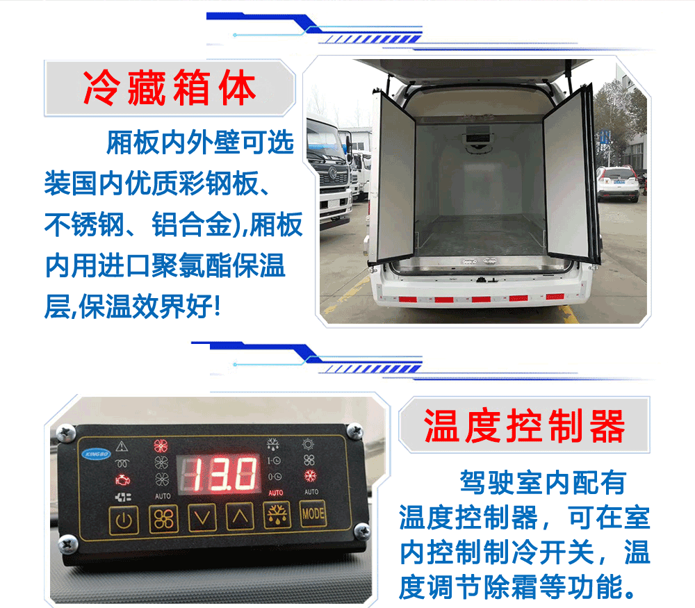 廂體工藝: 廂體材質(zhì)采用內(nèi)外玻璃鋼,中間8CM聚氨酯保溫板,后雙開門,廂體右側(cè)靠前選裝開側(cè)門,底部鋁花紋板,前部排水孔,門邊條采用迷宮式橡膠密封條,鋁合金型材包邊,不銹鋼包角,不銹鋼門鎖,不銹鋼門框及合頁(yè),廂體內(nèi)節(jié)能LED照明燈。