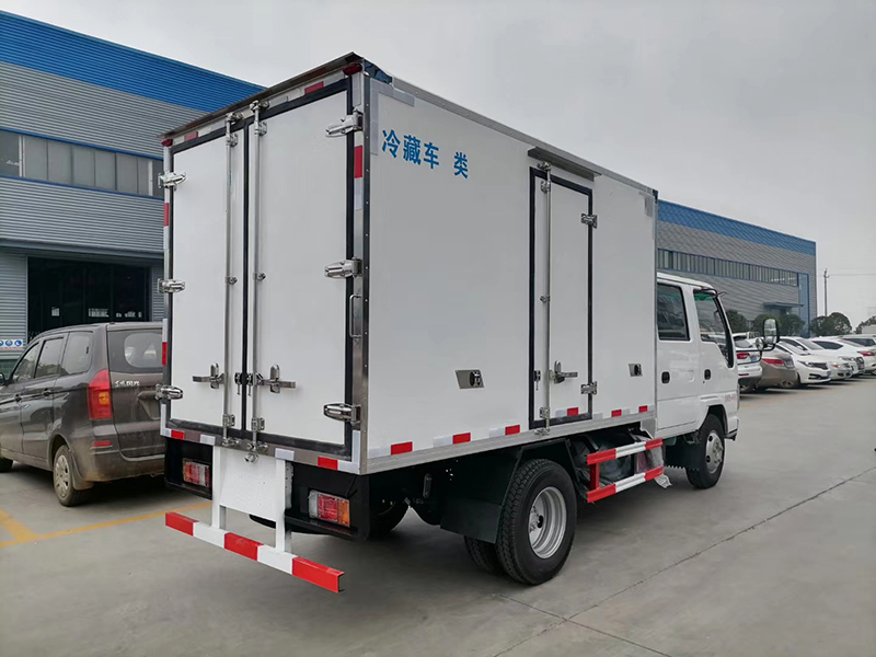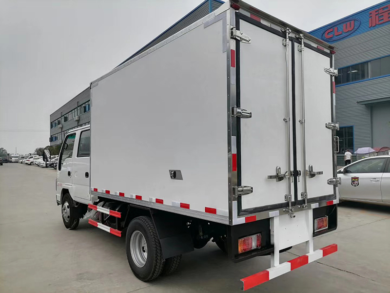 上裝配置:箱體采用內外玻璃鋼制作,中間聚氨酯8cm保溫板,后雙開門,底部鋁花紋板。鋁合金型材包邊,門鎖均為不銹鋼鎖件,前部排水孔。